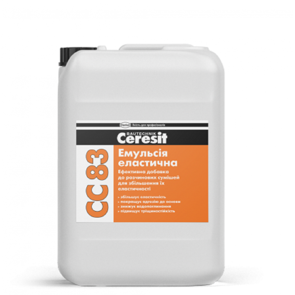 Додавання емульсії Ceresit СС 83 в розчинні суміші дозволяє підвищити їх еластичність, адгезію до основи, тріщиностойкість, знизити водопоглинання, а також імовірність вилуговування.
