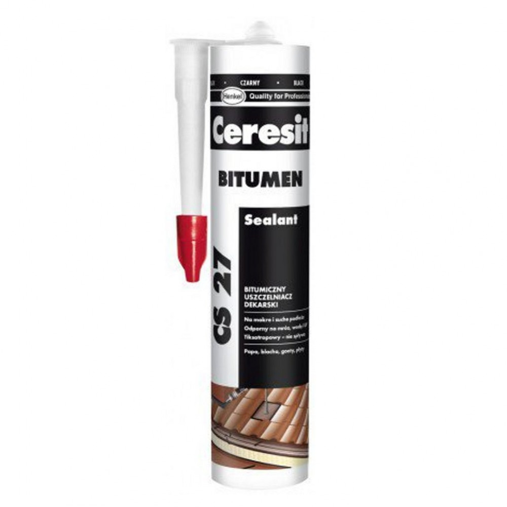 CS 27 Бітумний герметик призначений для герметизація тріщин, зазорів і стиків в дахах; герметизація стиків між елементами покрівлі та дренажу; швидке усунення протікання в елементах дахів; холодний клей для всіх типів матеріалів покрівлі; аварійний ремонт навіть в умовах дощу; обробка стиків в будівництві. Обмеження в застосуванні Герметик не слід фарбувати. Продукт може застосовуватися тільки для синтетичних матеріалів, які містять пластифікатори. Герметик ні в якому разі не можна наносити безпосередньо на полістирол. Контакт з мінеральними маслами може привести до розм'якшення продукту.