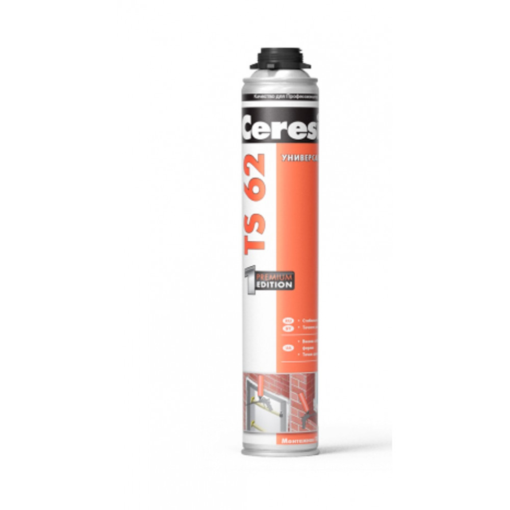 TS 62 Монтажна піна використовується для установки звуку - і теплоізоляційних матеріалів, вікон і дверей. Для герметизації отворів, щілин, стиків, місць з'єднань покрівельних конструкцій та ізоляційних матеріалів, проходів труб. Також монтажна піна Ceresit TS 62 застосовується для монтажу будівельних деталей. Професійна піна швидко наноситься, зручна і проста в застосуванні, має хорошу заповнює здатність і низька вторинне розширення. Використання монтажної піни Ceresit TS 62 значно прискорює і полегшує роботу.