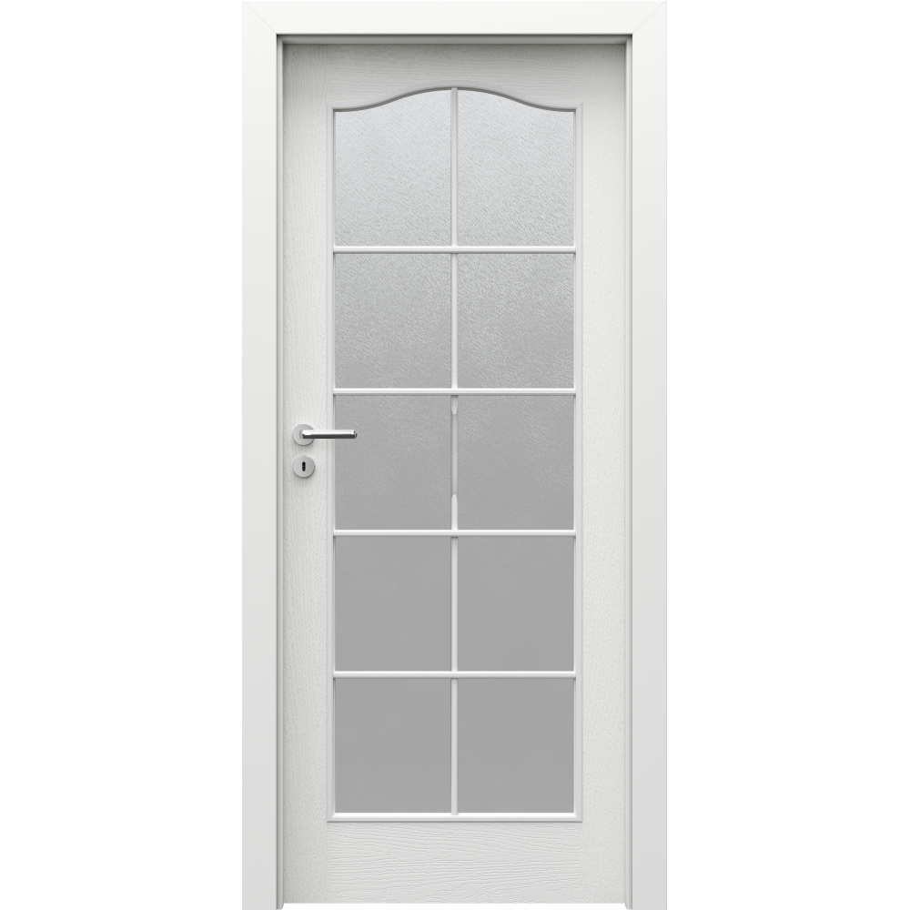 КОНСТРУКЦІЯ ПОЛОТНА Наповнення полотна - стабілізуючий стільниковий вкладиш або ДСП з трубчастими отворами в рамі з клеєної фанери, виготовленої з деревини хвойних порід, посиленою внутрішньої обв'язкою їх фанери (варіант при додатковій оплаті). Рама разом з наповнювачем обшита з двох сторін плитами ХДФ. В ціні полотна Дві напівшарнірні петлі standard. >Скло "шиншила" Три петлі (для полотен шириною "100" або "110") Замок: під звичайний ключ, з блокуванням WC або під вкладиш-патент >Скло "шиншила" Кругла ручка (для пересувних дверей) Примітки Полотна Minimax тільки у версії з чвертю. Полотна доступні також в незабарвленому вигляді - для самостійного фарбування Двостулкове полотно недоступно з магнітним замком Двері Колекції дверей Porta LONDYN Тип дверей Зі склом Вид Повністю засклене