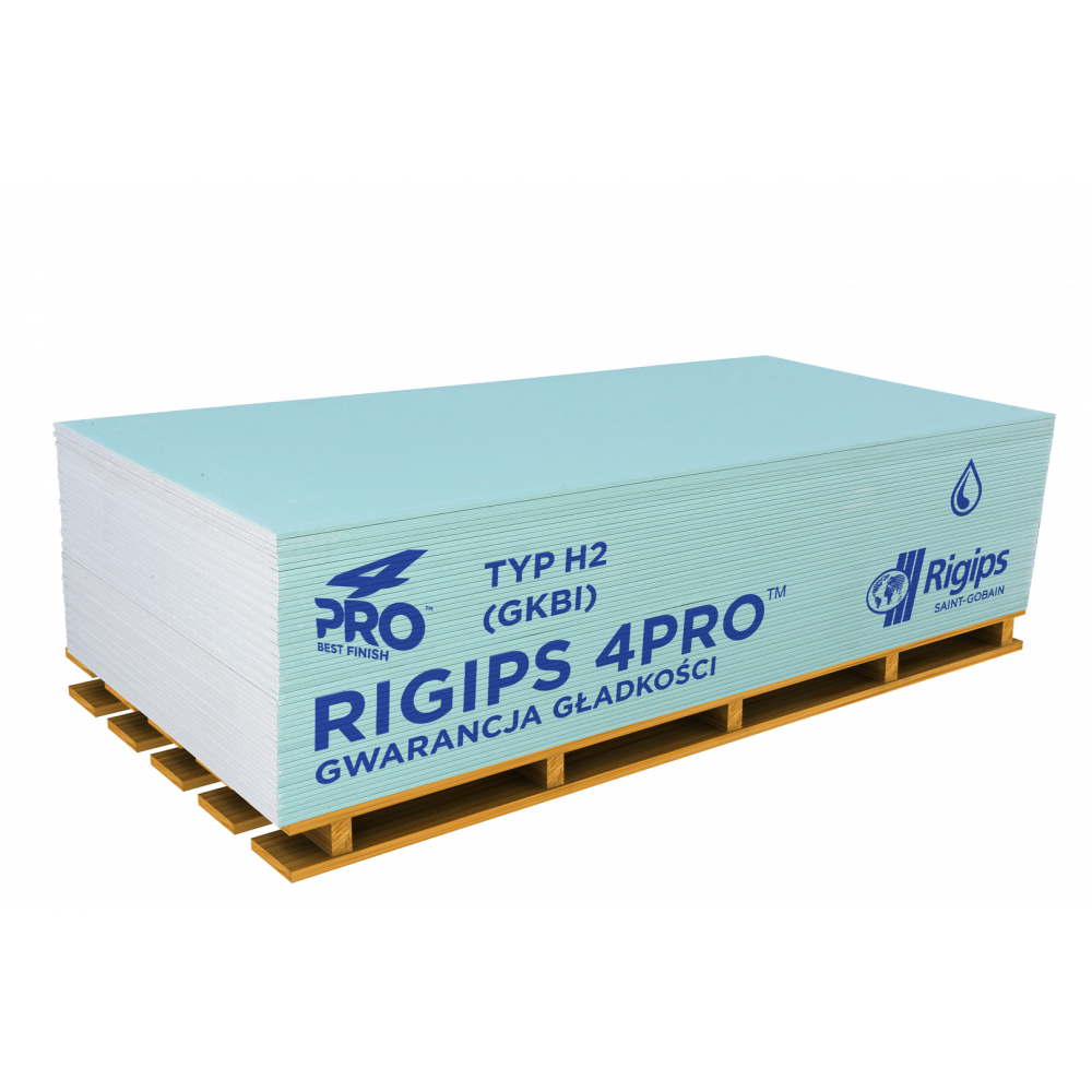 Гіпсокартон вологостійкий Rigips 4PRO Hydro (стіновий), 12.5x1200x2000 мм