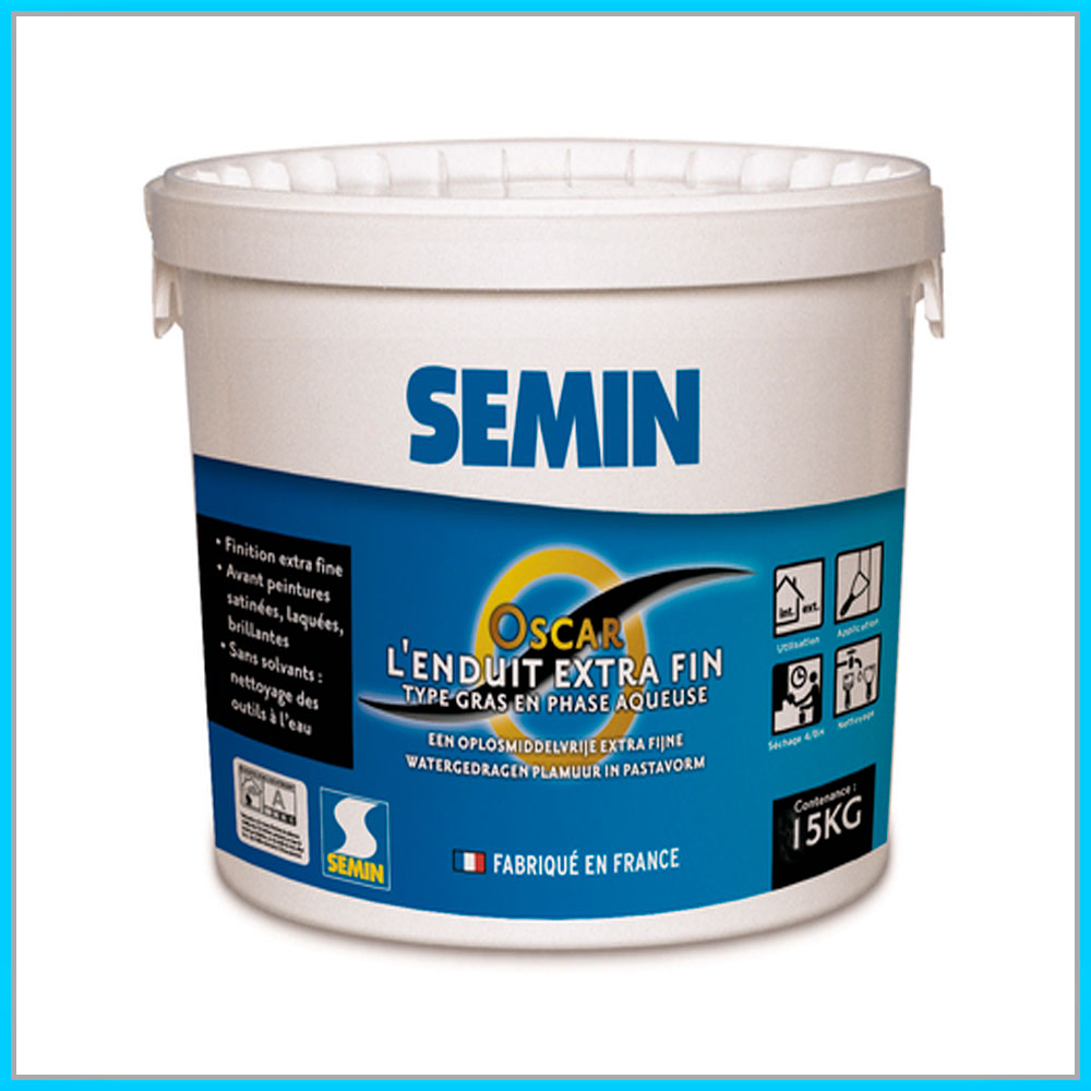 OSCAR від виробника Semin — цефінішна вологостійка шпаклівка. Рекомендується для досягнення надзвичайної якості глянцевого фінішного оздоблення і є ідеальним вибором для такої роботи. Ця готова до використання надтонка фінішна шпаклівка добре заповнює невеликі нерівності і може бути використана як всередині, так і ззовні будівлі. До складу OSCAR входять полімерні смоли, що роблять поверхню дуже щільною та захищеною від вологи, тому його можна використовувати для обробки сирих приміщень та для локальних робіт на фасадах. Також, оскільки ця шпаклівка має водорозчинний склад, вона дозволяє отримати фінішне оздоблення, ідентичне тому, що можна отримати лише з готових масляних шпаклівок, але без необхідності шліфування. Склад продукту містить смоли в стані емульсії, карбонат кальцію, реологічні компоненти та спеціальні добавки, а його паста має чистий білий колір.
