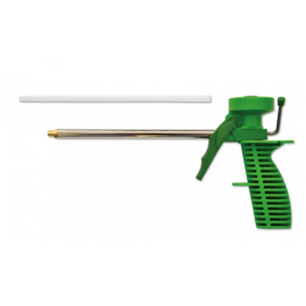 Пістолет для піни - металевий с хромованим покриттям. Довжина ствола 190мм, сопло діаметром 2мм. Пластикова ручка. використовується для робіт з монтажною піною в професійних упаковках під пістолет. Сопло з подовжувачем дозволяє наносити піну в тяжкодосяжних місцях.