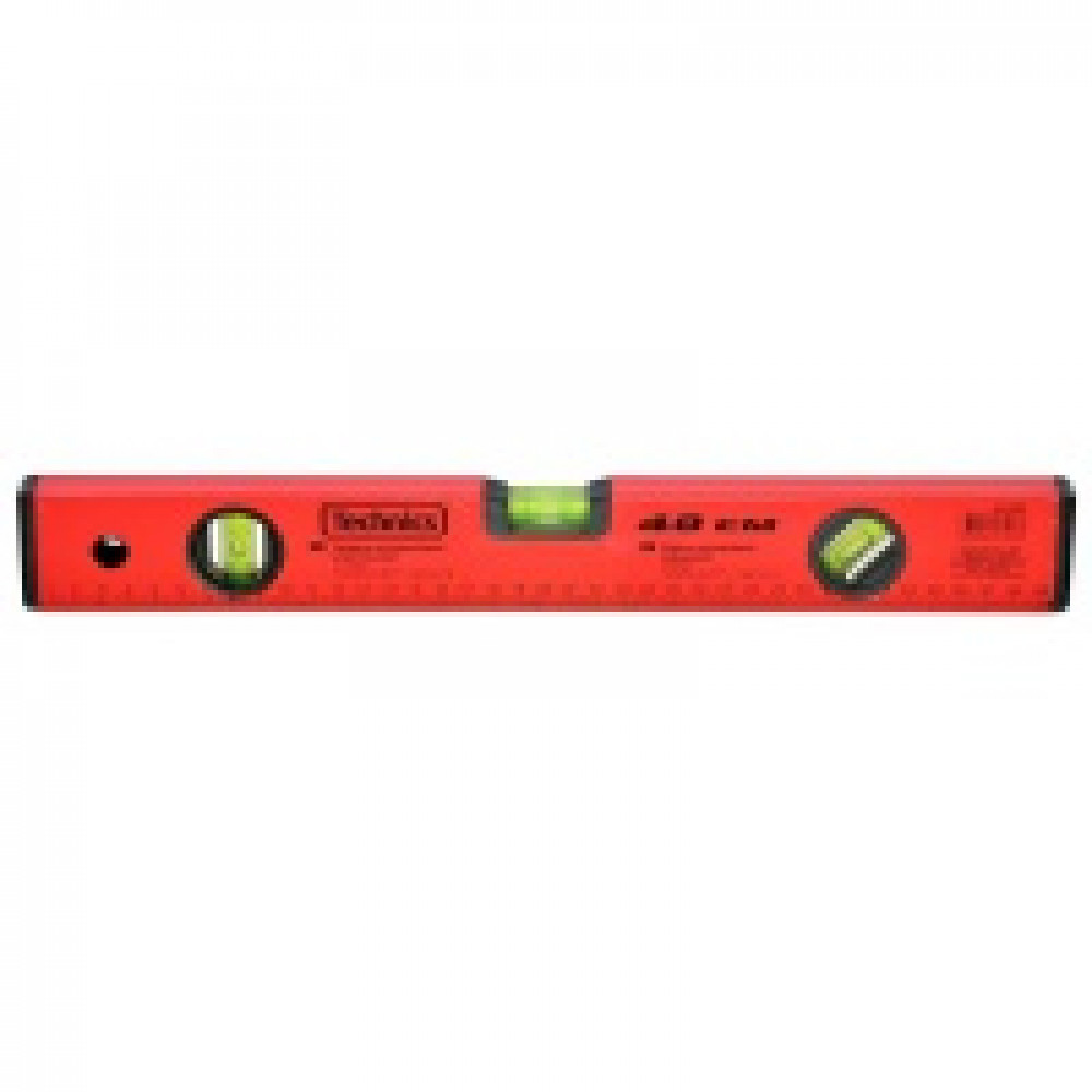 Ударостійкий алюмінієвий профіль з трьома вічками для визначення кутів 0, 45 і 90 градусів.Товщина металу 1,1 мм. Похибка - 0,057мм. На рівень нанесена метрична шкала.