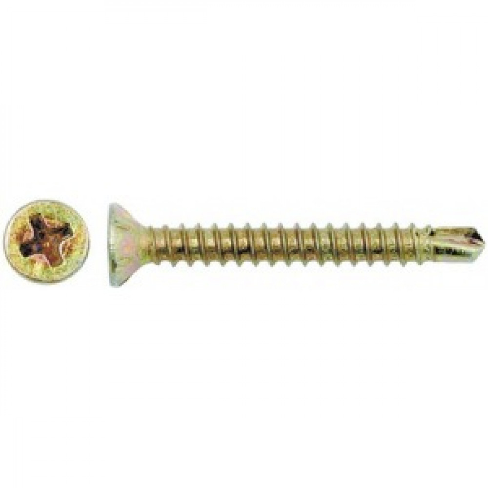 Самонаріз по пластику (віконний) з буром, потайною головкою с хрестоподібним шліцем і зенковочними ребрами (жовтопасований)