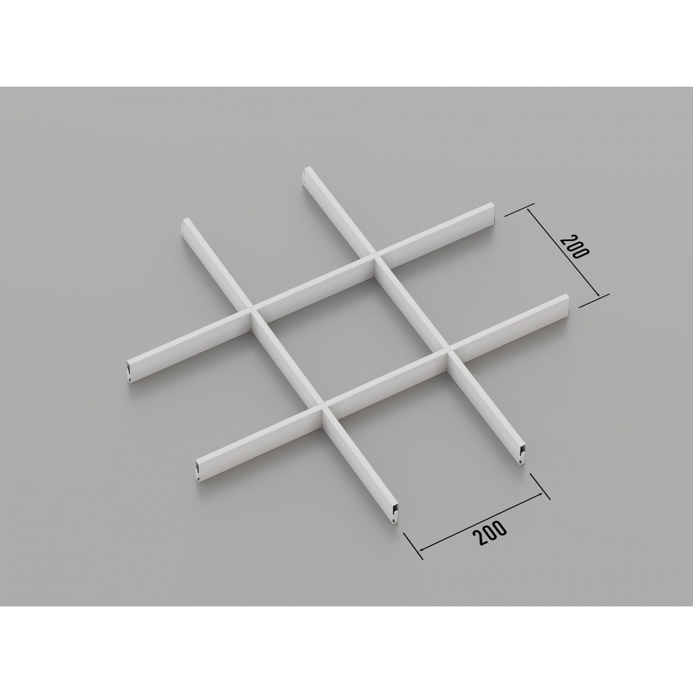 Стеля ГРИЛЬЯТО 200x200 мм, класичне GL в модульну систему RAL 9003, білий, ідеально підходить для офісних будівель, торговельних центрів та житлових приміщень. Її простота і функціональність роблять її ідеальним рішенням для створення світлих і просторих інтер\'єрів, а також для об\'єктів з високими вимогами до технічного обслуговування.