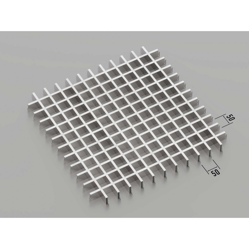 Стеля ГРИЛЬЯТО 50x50 мм, класичне, хром — це сучасна модульна система підвісних стель, що ідеально підходить для оформлення стильних інтер\'єрів. Плити з комірками розміром 50x50 мм виготовлені з оцинкованої сталі товщиною 0.23-0.25 мм або алюмінію на замовлення. Хромована поверхня додає приміщенню сучасний та елегантний вигляд, що робить цю модель відмінним вибором для офісів, торгових залів, ресторанів та житлових приміщень.
