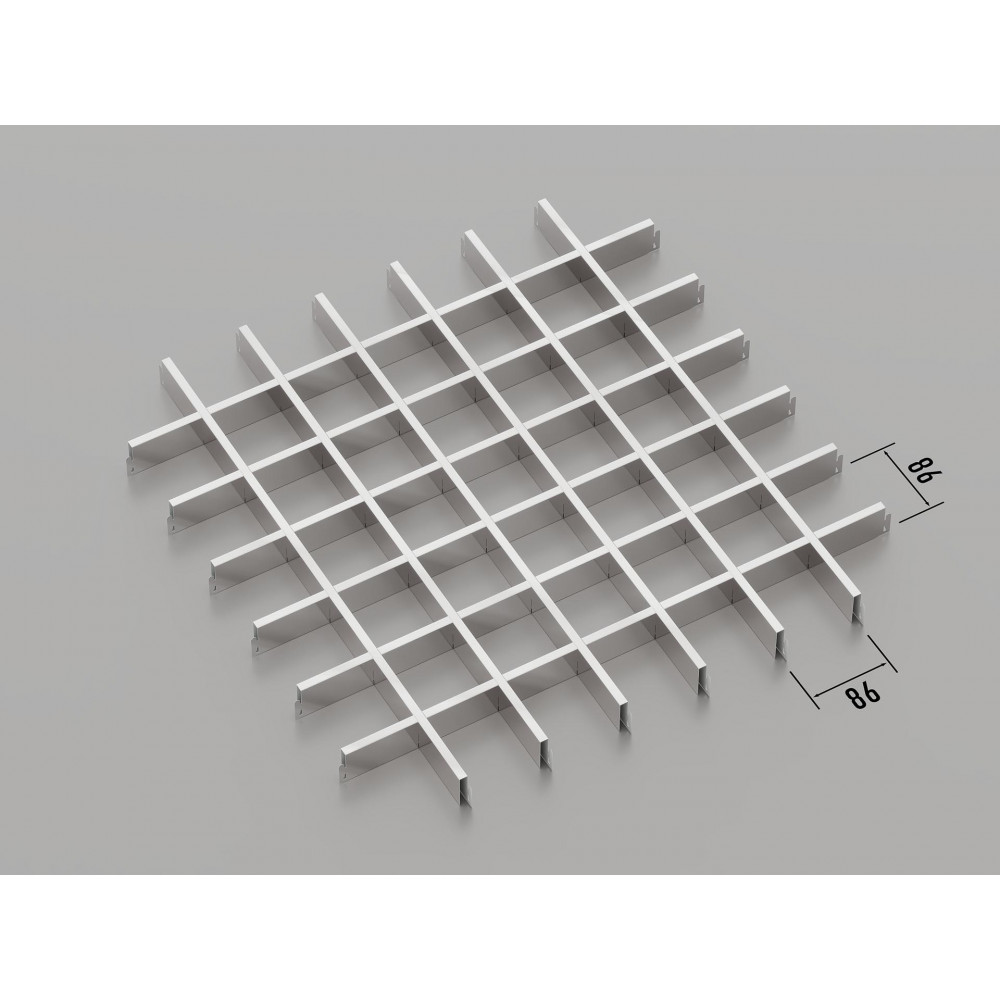 Стеля ГРИЛЬЯТО 86x86 мм, класичне, хром, широко використовується в офісних приміщеннях, торгових центрах, житлових комплексах, ресторанах та кафе. Її універсальний дизайн та практична модульна конструкція дозволяють легко адаптувати стелю під будь-які вимоги приміщення, забезпечуючи не тільки естетичний вигляд, але й легкий доступ до комунікацій.