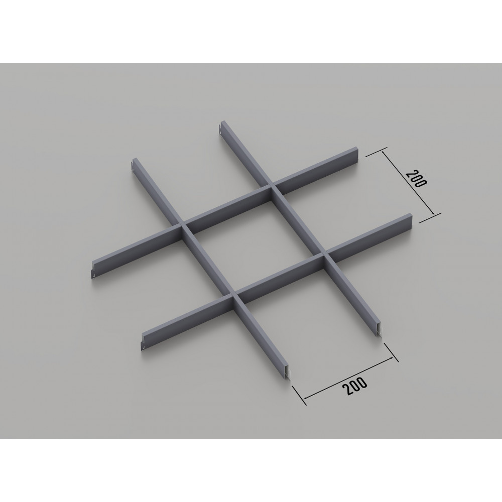 Стеля ГРИЛЬЯТО 200x200 мм класичне RAL 7024, графіт — це сучасна підвісна система, ідеально підходить для комерційних, офісних та житлових інтер\'єрів. Модульні плити з осередками розміром 200x200 мм виготовлені з оцинкованої сталі товщиною 0.23-0.25 мм (доступний також алюмінієвий варіант на замовлення). Колір «графіт» (RAL 7024) надає приміщенню стильний і лаконічний вигляд, створюючи сучасну і функціональну атмосферу.