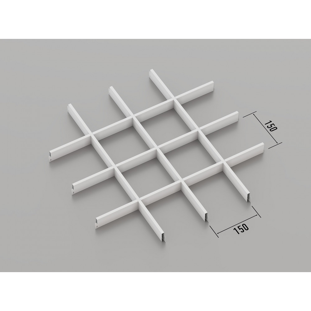 Стеля ГРИЛЬЯТО 150x150 мм класичне, RAL 9003, білий — це модульна система підвісних стель, призначена для створення стильних і сучасних інтер’єрів. Комірки розміром 150x150 мм виготовлені з оцинкованої сталі товщиною 0.23-0.25 мм, що забезпечує високу довговічність і стійкість конструкції. За запитом доступний варіант з алюмінію (товщина 0.4-0.6 мм). Білий колір (RAL 9003) надає стелі чистоти та універсальний зовнішній вигляд, що ідеально підходить для офісів, торгових і житлових приміщень.