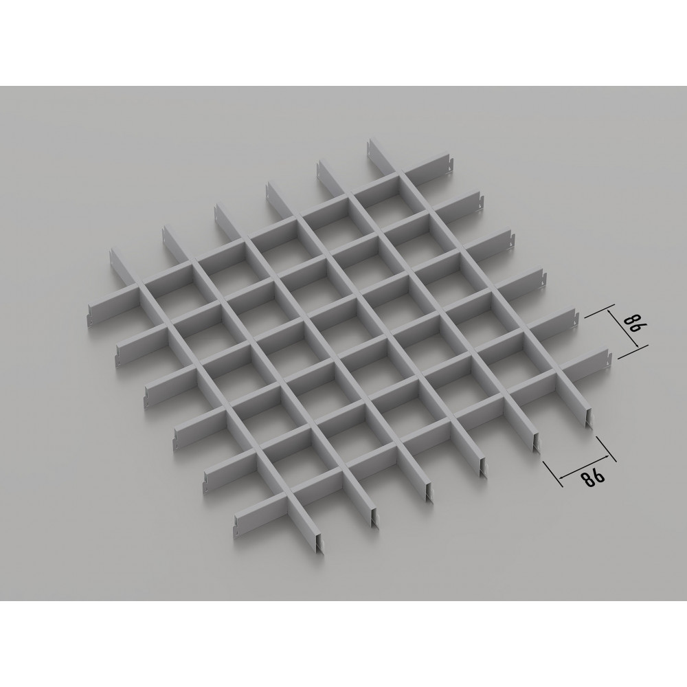Стеля ГРИЛЬЯТО 86x86 мм класичне, RAL 9006, сірий — це модульна система підвісних стель, яка забезпечує сучасний та елегантний вигляд будь-якому приміщенню. Система складається з комірок розміром 86x86 мм, виконаних з оцинкованої сталі товщиною 0.23-0.25 мм. За запитом доступний варіант з алюмінію товщиною до 0.6 мм. Сірий відтінок (RAL 9006) додає приміщенню стриманості та сучасності, що робить цю стелю відмінним вибором для офісів, магазинів, торгових центрів та житлових приміщень. Простота встановлення та довговічність роблять її ідеальною для тривалої експлуатації.