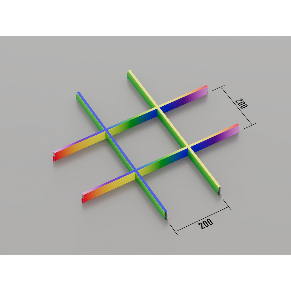 Стеля ГРИЛЬЯТО 200x200 мм класичне RAL під замовлення — це сучасна модульна підвісна система, розроблена для оформлення стильних і функціональних інтер\'єрів. Плити з комірками розміром 200x200 мм виготовлені з оцинкованої сталі товщиною 0.23-0.25 мм, також за запитом доступний варіант з алюмінію (товщиною 0.4-0.6 мм). Ця стеля відзначається міцністю, довговічністю і можливістю вибору будь-якого кольору за палітрою RAL, що дозволяє гармонійно інтегрувати її в різні інтер\'єри: від офісів до житлових приміщень.