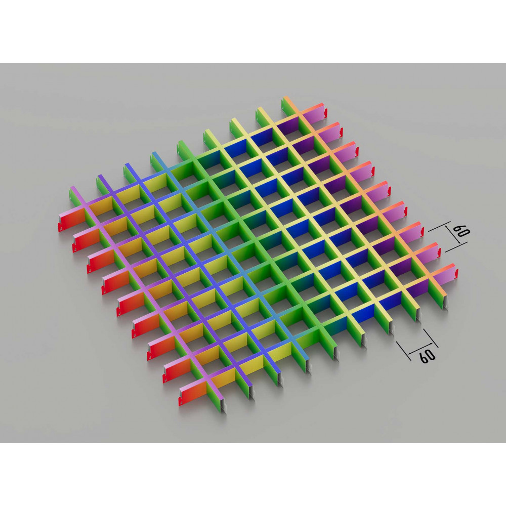 Стеля ГРИЛЬЯТО 60x60 мм, класичне, RAL на замовлення — це універсальна модульна система підвісних стель, яка підходить для різних типів інтер’єрів. Завдяки використанню плит з комірками розміром 60x60 мм, виготовлених із оцинкованої сталі (товщиною 0.23-0.25 мм) або алюмінію (за запитом), ця система відрізняється міцністю, простотою монтажу та стильним зовнішнім виглядом. Можливість вибору будь-якого кольору RAL робить цю стелю ідеальним рішенням для персоналізованих інтер’єрів в офісах, торгових центрах і житлових приміщеннях.