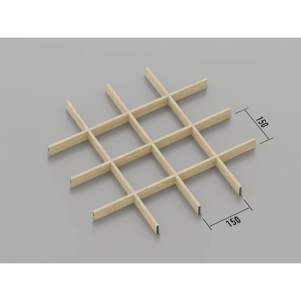 Стеля ГРИЛЬЯТО 150x150 мм класичне, світле дерево — це модульна підвісна система, яка ідеально підходить для оформлення сучасних інтер’єрів. Комірки розміром 150x150 мм створюють легку і стильну конструкцію, яка не тільки прикрашає простір, але й забезпечує зручний доступ до комунікацій. Стеля виготовлена з оцинкованої сталі товщиною 0.23-0.25 мм, за запитом доступна версія з алюмінію товщиною 0.4-0.6 мм. Колір "Світле дерево" надає приміщенню природності та затишку, що робить цю стелю чудовим вибором для офісів, торгових центрів і житлових приміщень.
