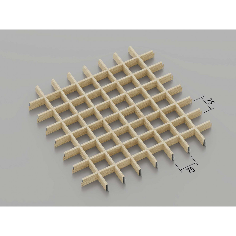 Стеля ГРИЛЬЯТО 75x75 мм, класичне, світле дерево — це модульна система підвісних стель, яка ідеально підходить для оформлення стильних та сучасних інтер\'єрів. Панелі з комірками 75x75 мм виконані з оцинкованої сталі товщиною 0.23-0.25 мм, що забезпечує довговічність і надійність конструкції. За запитом доступна модифікація з алюмінію (0.4-0.6 мм). Світлий відтінок деревини надає приміщенню затишок і природність, роблячи його ідеальним для офісів, житлових приміщень та комерційних просторів.