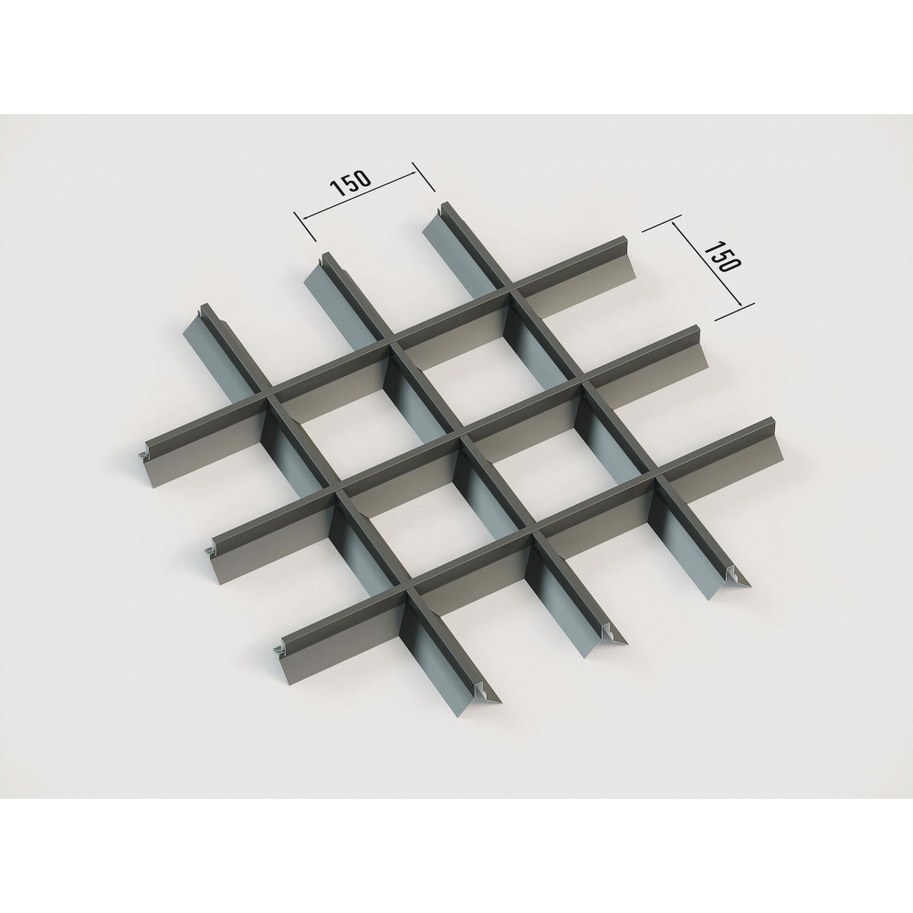 Стеля ГРИЛЬЯТО 150x150 мм, пірамідальне, RAL 9005, чорний — це сучасна система підвісних стель, розроблена для створення стильних і функціональних інтер\'єрів. Система складається з панелей з пірамідальною формою осередків розміром 150x150 мм, виготовлених з оцинкованої сталі товщиною 0.23-0.25 мм, що гарантує високу міцність і довговічність конструкції. За запитом можливий варіант з алюмінію (товщина 0.4-0.6 мм). Чорний колір (RAL 9005) додає елегантності і контрасту приміщенню, роблячи його чудовим рішенням для офісів, торгових і житлових приміщень.