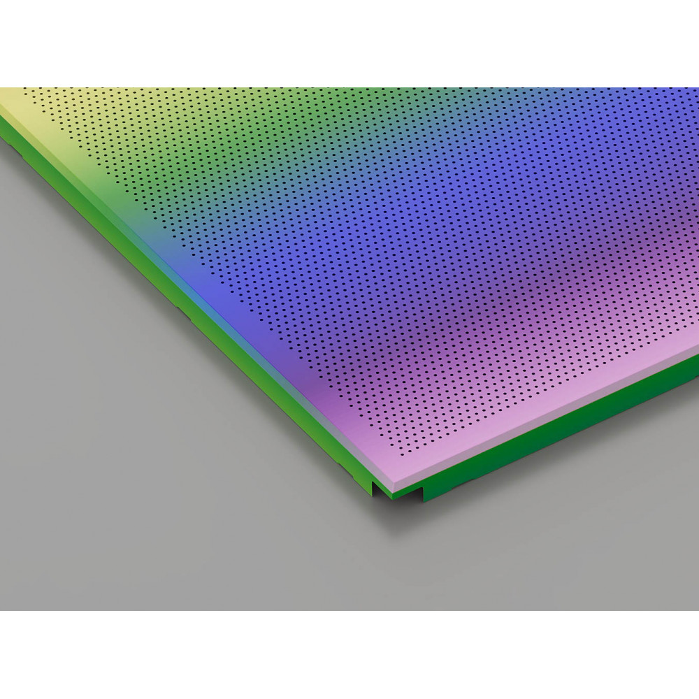 Перфорована металева касета (RAL під замовлення), кромка — Board, 595x595 мм — це універсальне рішення для підвісних стель, яке пропонує безмежні можливості для вибору кольору з каталогу RAL. Виготовлена з оцинкованої сталі товщиною 0.23-0.25 мм або алюмінію (за запитом), ця касета забезпечує міцність, довговічність і високі акустичні характеристики завдяки перфорованій поверхні. Можливість вибору кольору робить її ідеальною для створення унікальних інтер\'єрів в офісах, комерційних і громадських приміщеннях.