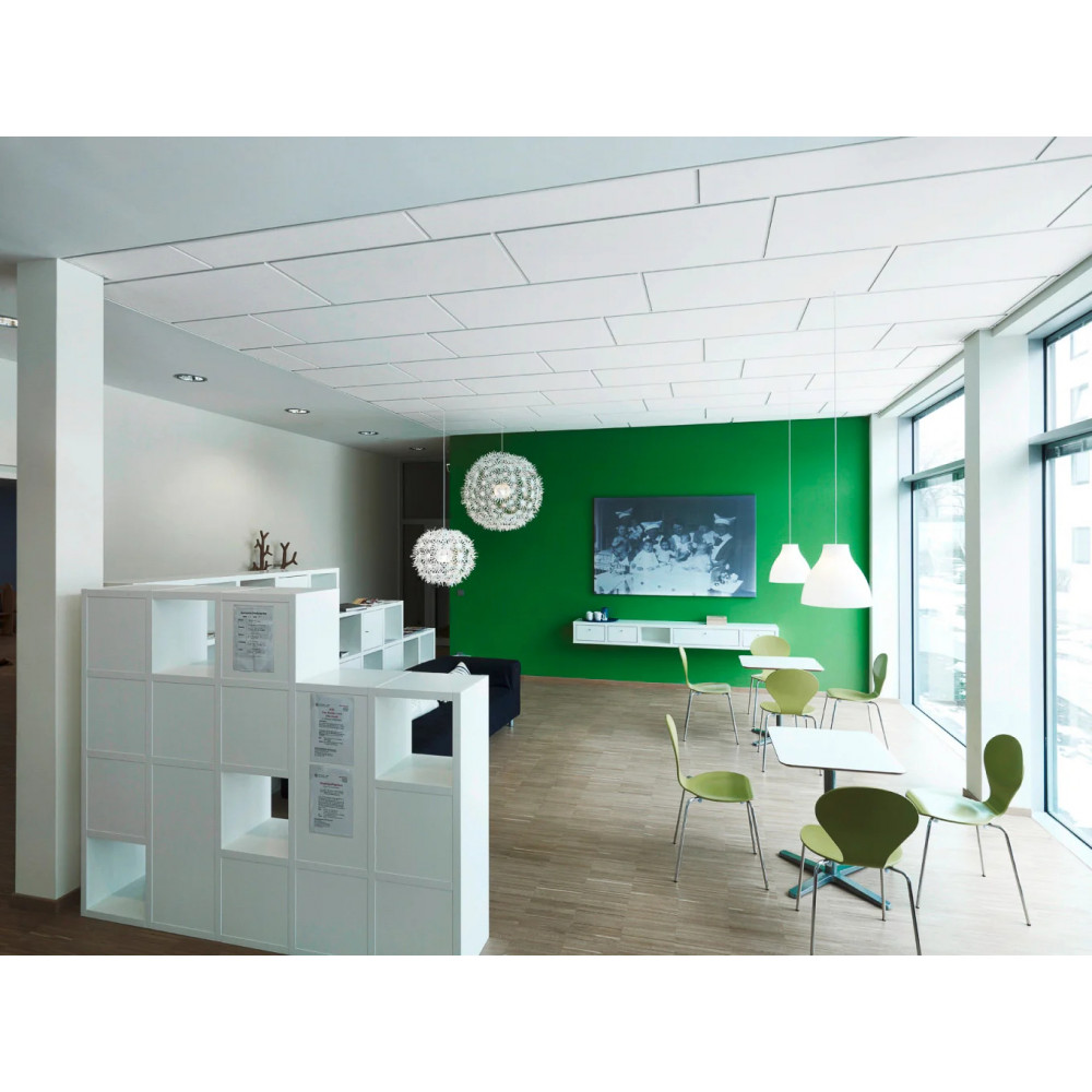 Панелі мають високі звукопоглинаючі характеристики (0.95 αw / 0.90 NRC), що робить їх ідеальними для використання в офісах, кафе, ресторанах, шкільних кабінетах та інших навчальних приміщеннях. Вони допомагають суттєво знизити рівень шуму та покращити акустичний комфорт у приміщеннях.