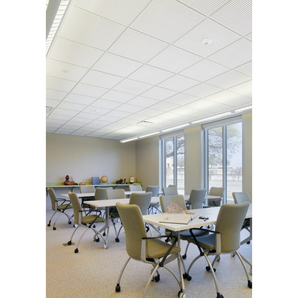 Плити виготовлені з мінерального волокна і покриті високоякісним акустичним флісом. Це поєднання забезпечує відмінні характеристики звукопоглинання і довговічність. Гладка поверхня з ефектом металевої перфорації надає плитам сучасний вигляд і робить їх більш об\'ємними.