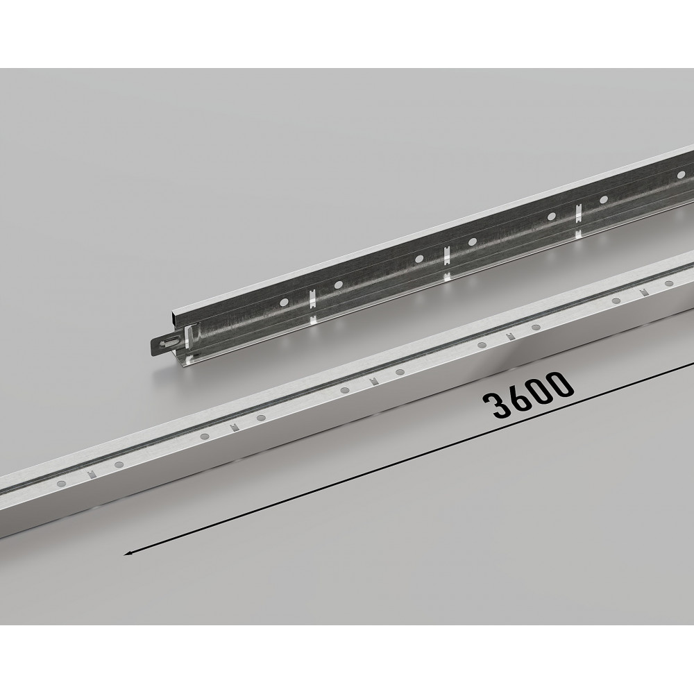 Несучий профіль КЗС T-24 довжиною 3600 мм з хромовим покриттям — це стильне та надійне рішення для підвісних стель. Виконаний з оцинкованої сталі товщиною 0.23–0.25 мм, що забезпечує міцність і довговічність. Хромове оздоблення надає сучасний вигляд, ідеально підходить для престижних інтер\'єрів.