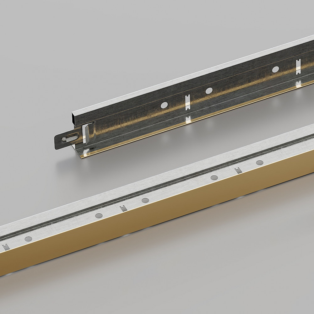 Профіль КЗС T-24 з золотим покриттям ідеально підходить для оформлення престижних інтер\'єрів, таких як готелі, ресторани, виставкові зали та елітні офіси. Його довговічність і стійкість до корозії роблять його надійним рішенням навіть для приміщень з підвищеною вологістю.