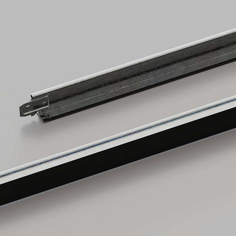 Поперечний профіль КЗС T-24 довжиною 1200 мм в елегантному чорному виконанні (RAL 9005) ідеально підходить для створення стильних підвісних стель. Виготовлений з оцинкованої сталі товщиною 0.23–0.25 мм, що забезпечує високу міцність і стійкість до корозії. За запитом доступний варіант з алюмінію (0.4–0.6 мм).