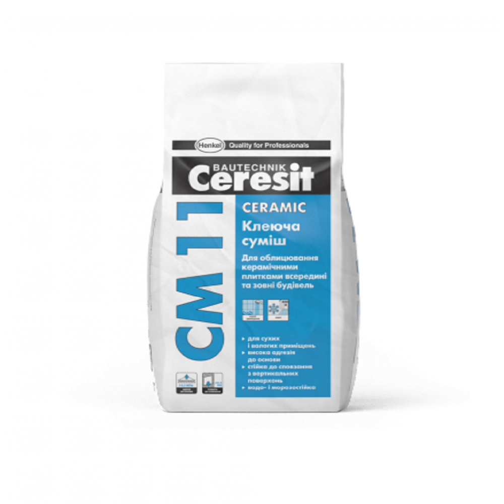 Клеюча суміш для плитки Ceresit СМ 11 Ceramic для облицювання керамічною плиткою всередині і зовні будинків.